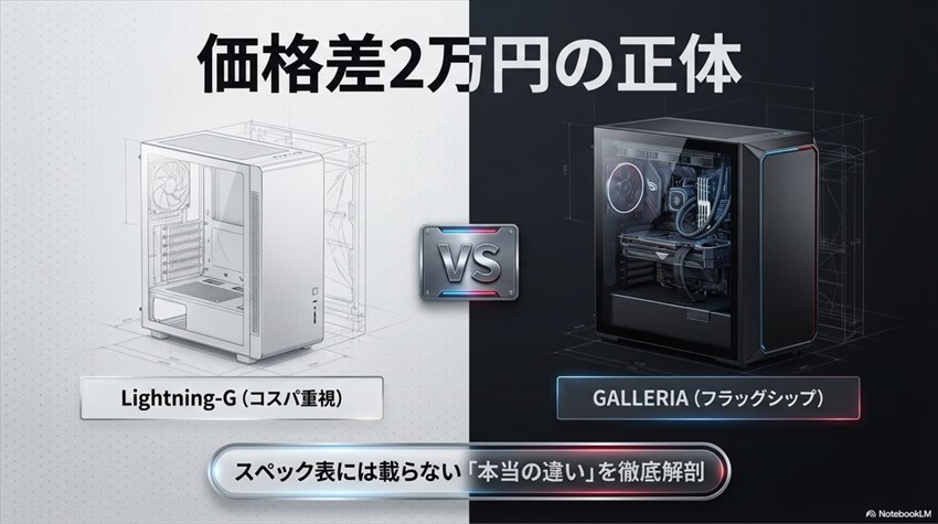 ドスパラの公式サイトでゲーミングPCを探していて、ふと手が止まった経験はありませんか? 「Lightning-G」と「GALLERIA」。同じドスパラなのに、ブランドが2つある。しかもスペックが似ているのに、値段が2万円くらい違う。 「え、何が違うの?」「安い方... -