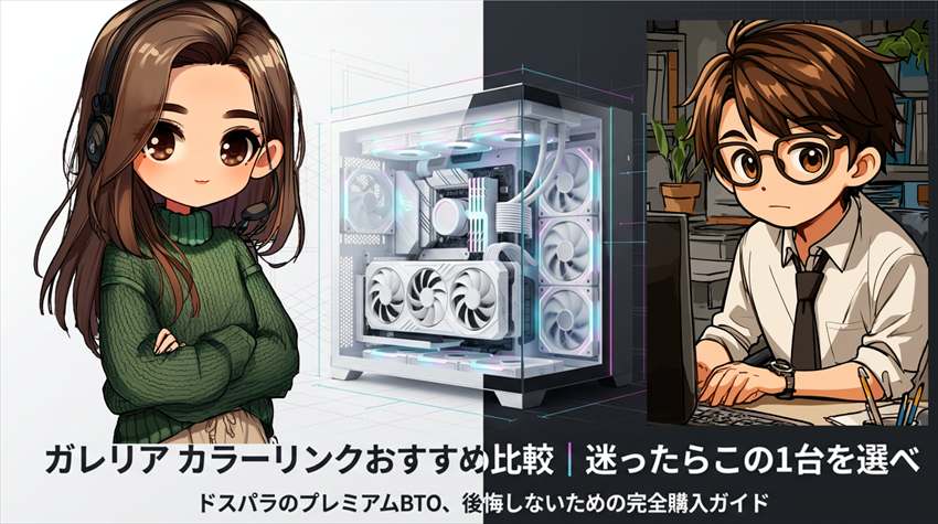 GALLERIAのカラーリンクモデル、公式サイトを開いた瞬間に「多すぎて選べない」と画面を閉じかけた人、正直に手を挙げてください。 僕自身、ドスパラの製品ページを初めて開いたとき、白・黒のカラバリ、ミニタワー・ミドルタワーのサイズ違い、GPUとCPUの... -